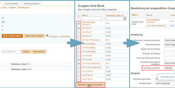• Für alle Gruppen die Anmeldung auf einmal schließen